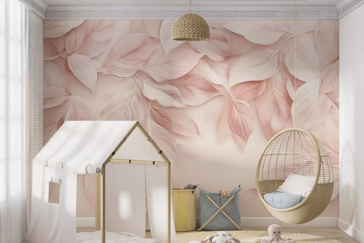 Тапете за зид нежно ружичасто лишће за спаваћу собу девојке бр. w02549