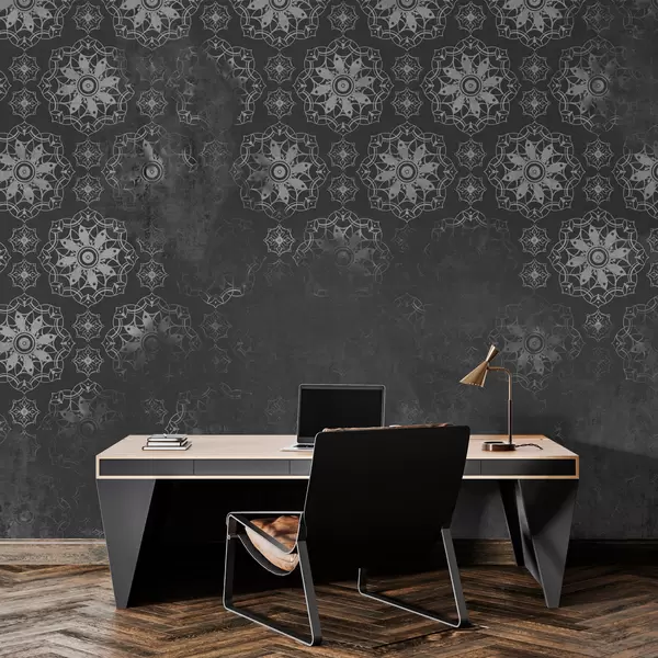 Тапете за зид Винтаге дизајн са елементима мандале и узнемиреним ефектом у сивој боји бр. w02551v1