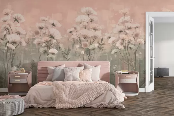Тапете за зид Нежно дивље цвеће са ефектом потеза четкице у розе бр. w02629