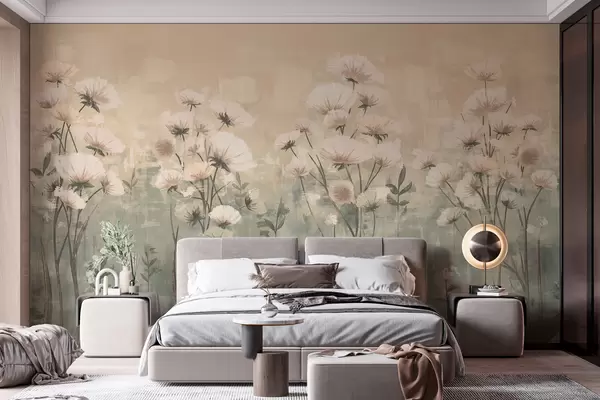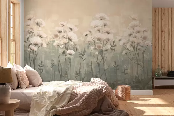 Тапете за зид Нежно дивље цвеће са ефектом потеза четкице у жутој и беж боји бр. w02629v1