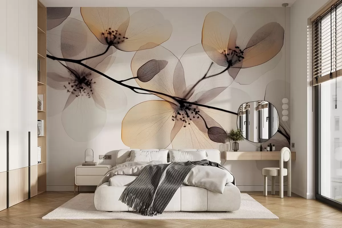 Тапете за зид нежна и префињена грана са провидним цветовима бр. w02630