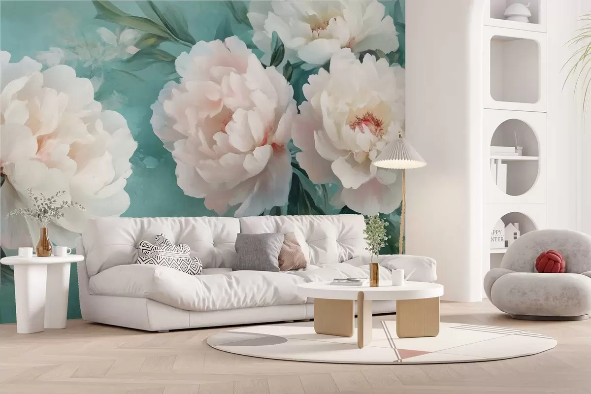 Тапете за зид велики цветови бујних божура на тиркизној позадини бр. w02763