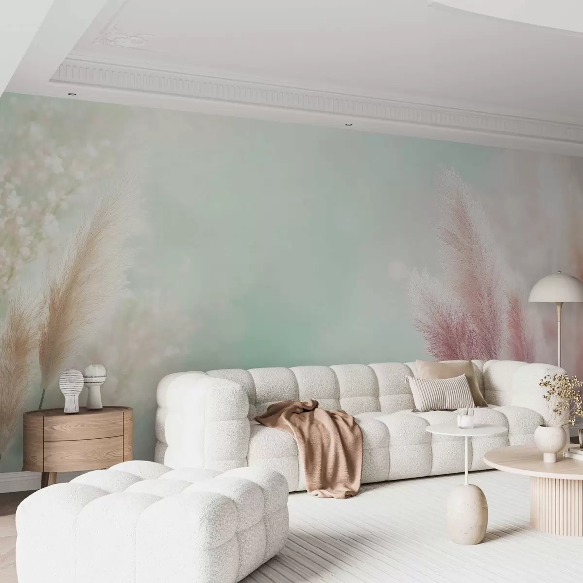 Тапете за зид пампас трава на деликатној тиркизној позадини бр. w02766