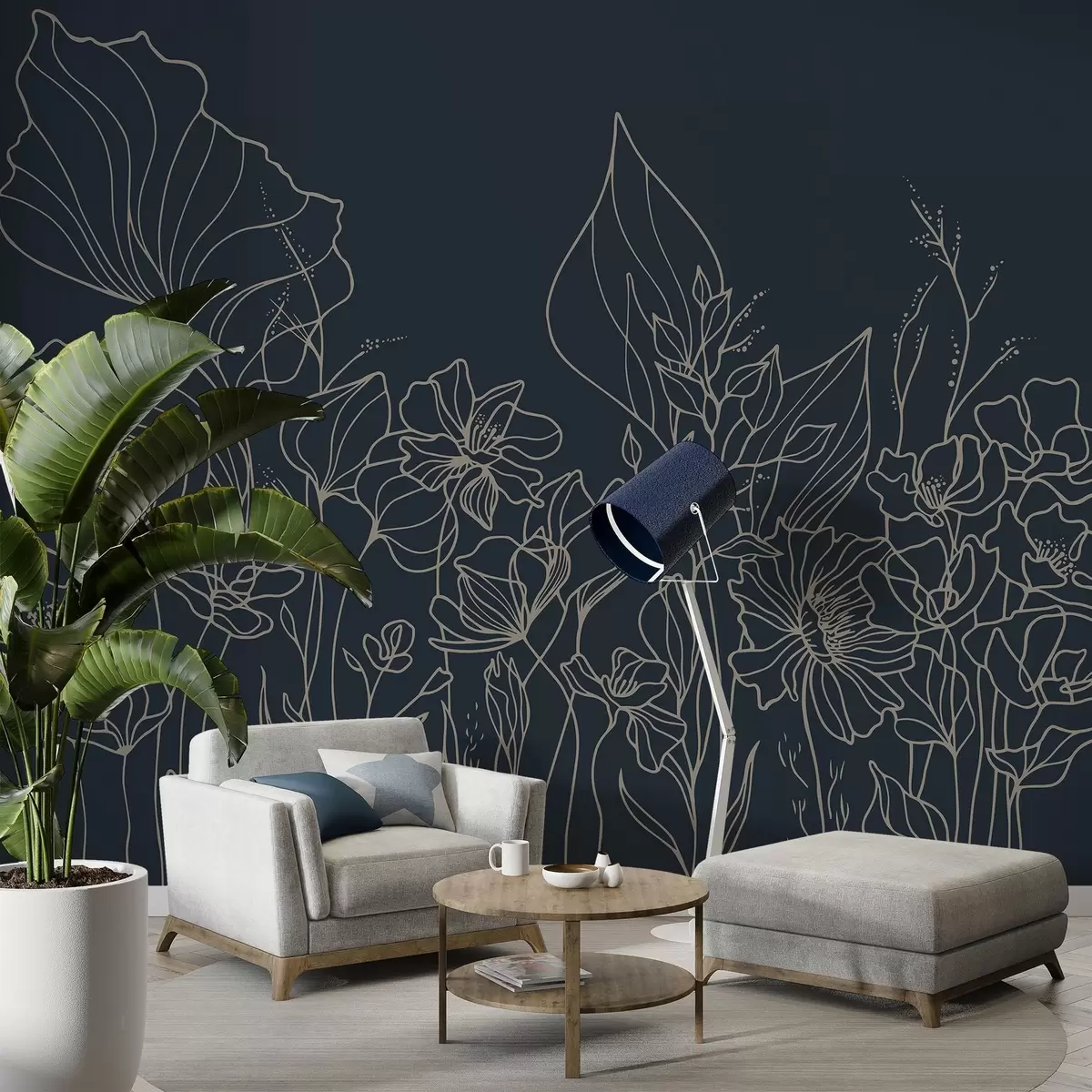 Тапете за зид Елегантна цветна линија на тамно плавој боји бр. w02773v2