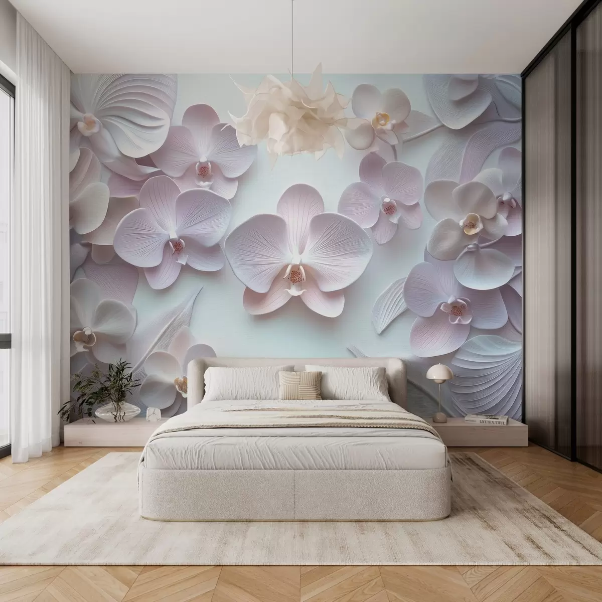 Тапете за зид Деликатно цвеће архидије светлих боја са 3Д имитацијом бр. w02912
