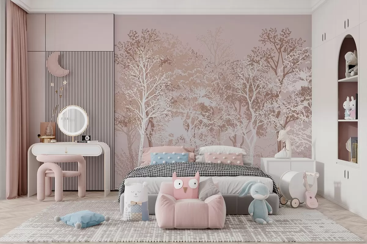 Тапете за зид Дрвеће у шуми, минимализам, природа, беж палета боја бр. w02930