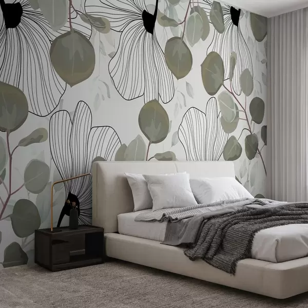 Тапете за зид Састав белог цвећа и зеленог лишћа бр. w02955