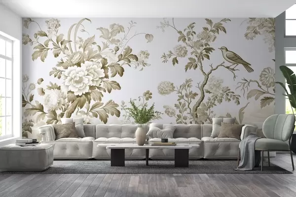 Тапете за зид Осликана башта у монохрому бр. w02977v1