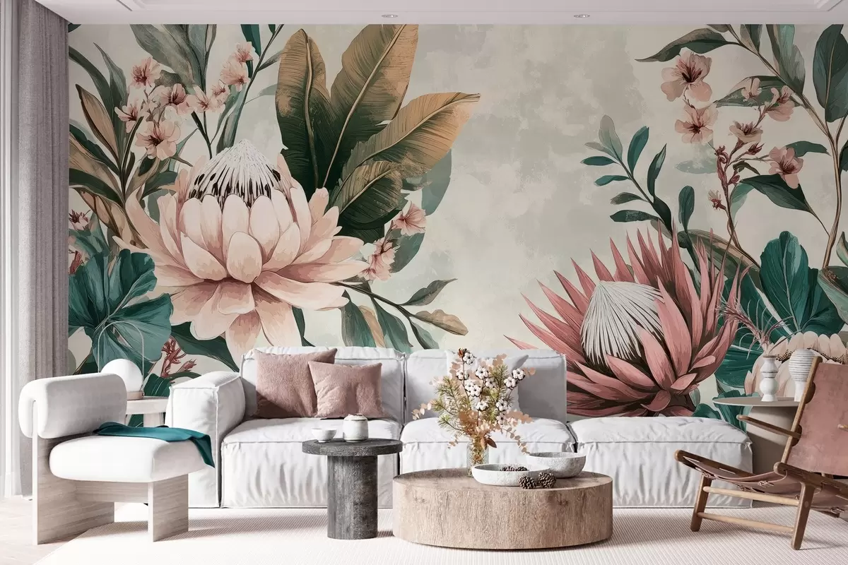 Тапете за зид егзотичне биљке, палмино лишће и цвеће протеје инспирисане берби бр. w03015