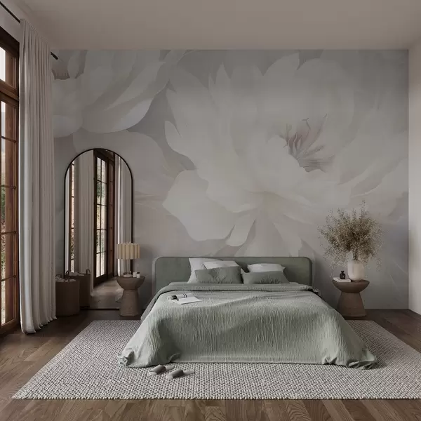 Тапете за зид Нежно волуминозно цвеће у меким крем-белим тоновима на нежној позадини бр. w03045