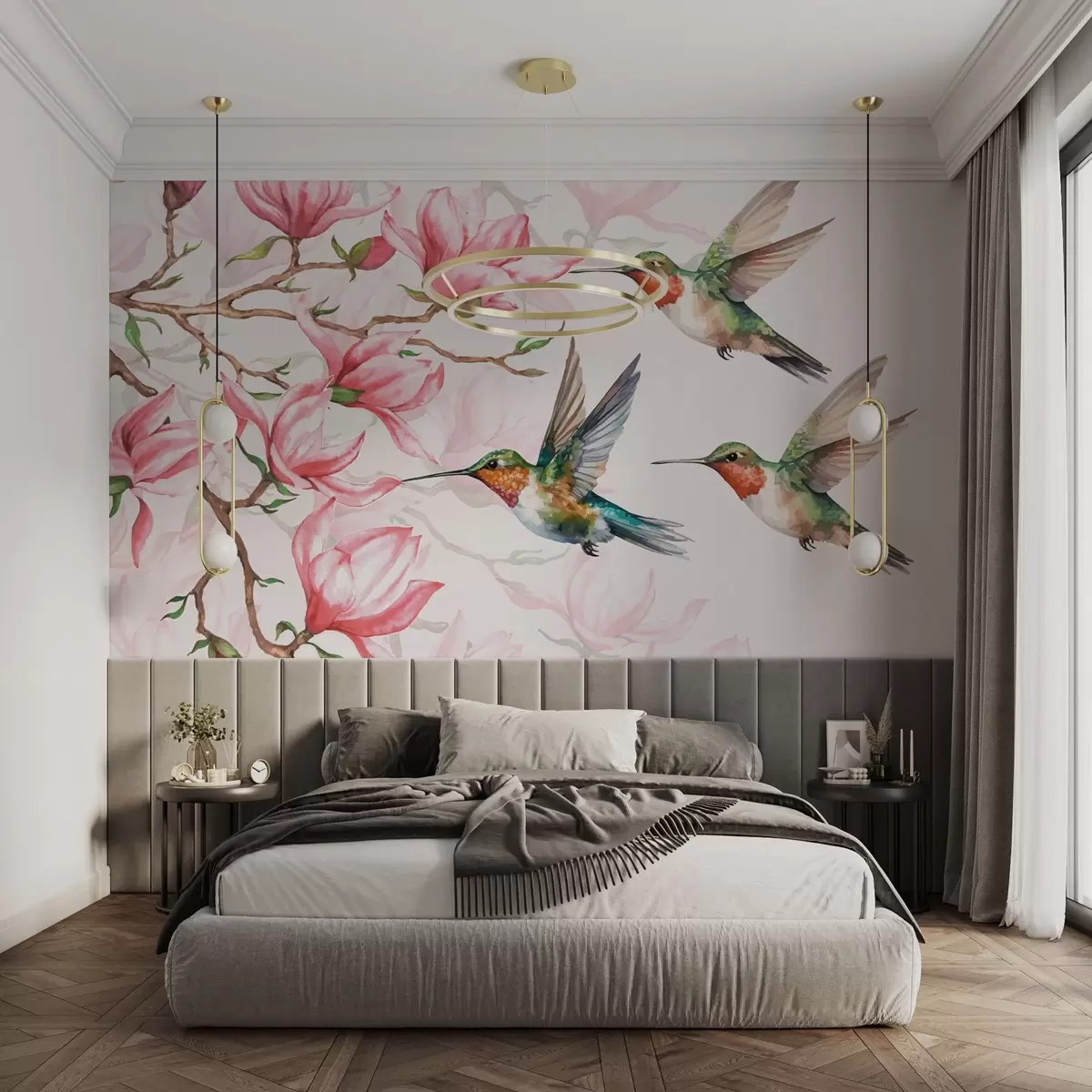 Тапете за зид Цветају магнолије и колибри бр. w03104