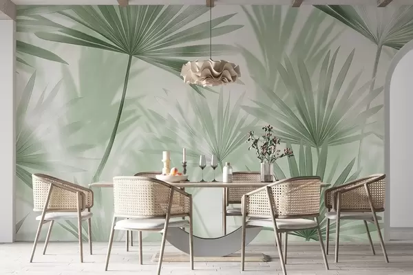 Тапете за зид Палмино лишће, цветни узорак, минимализам, тропске, зелене боје бр. w03152v2