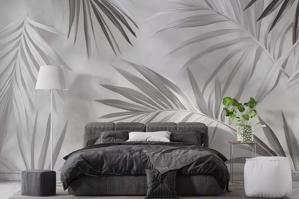 wall murals Тропско лишће апстракција, палма, палета сиве боје w03153v4
