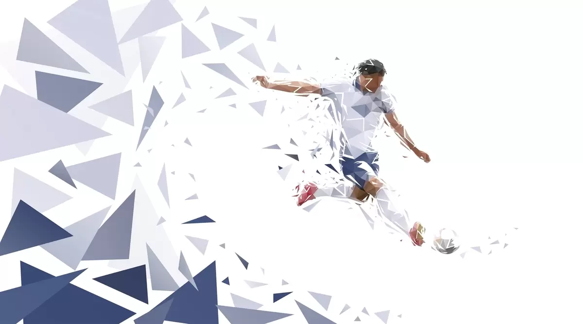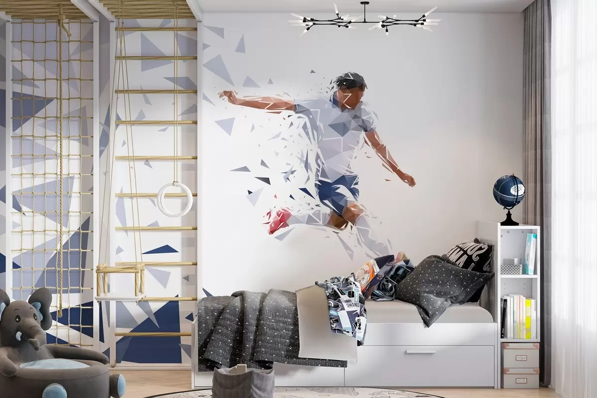 Тапете за зид Динамичан фудбалер у лов-поли стилу, удара лопту бр. w03289