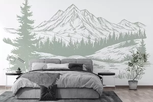 Тапете за зид Планински пејзаж са боровима, шума, природа, нежно зелена боја бр. w03344v1