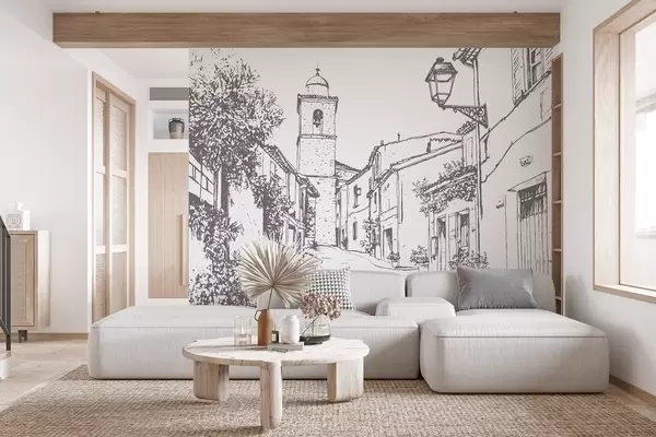 Тапете за зид Градска улица, лепа архитектура, зграде, Медитеран, цртање линија, беж боја бр. w03345v1