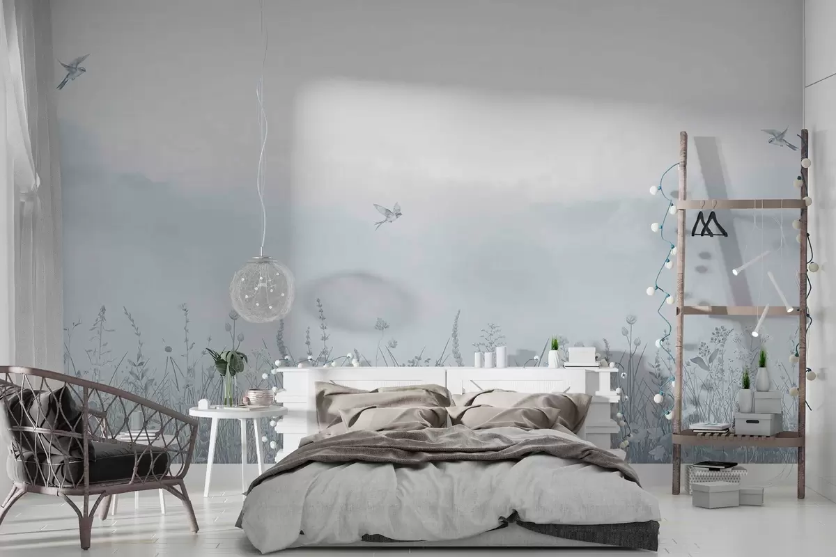 Тапете за зид Дивље цвеће и магловито небо у плавим тоновима бр. w03391v1