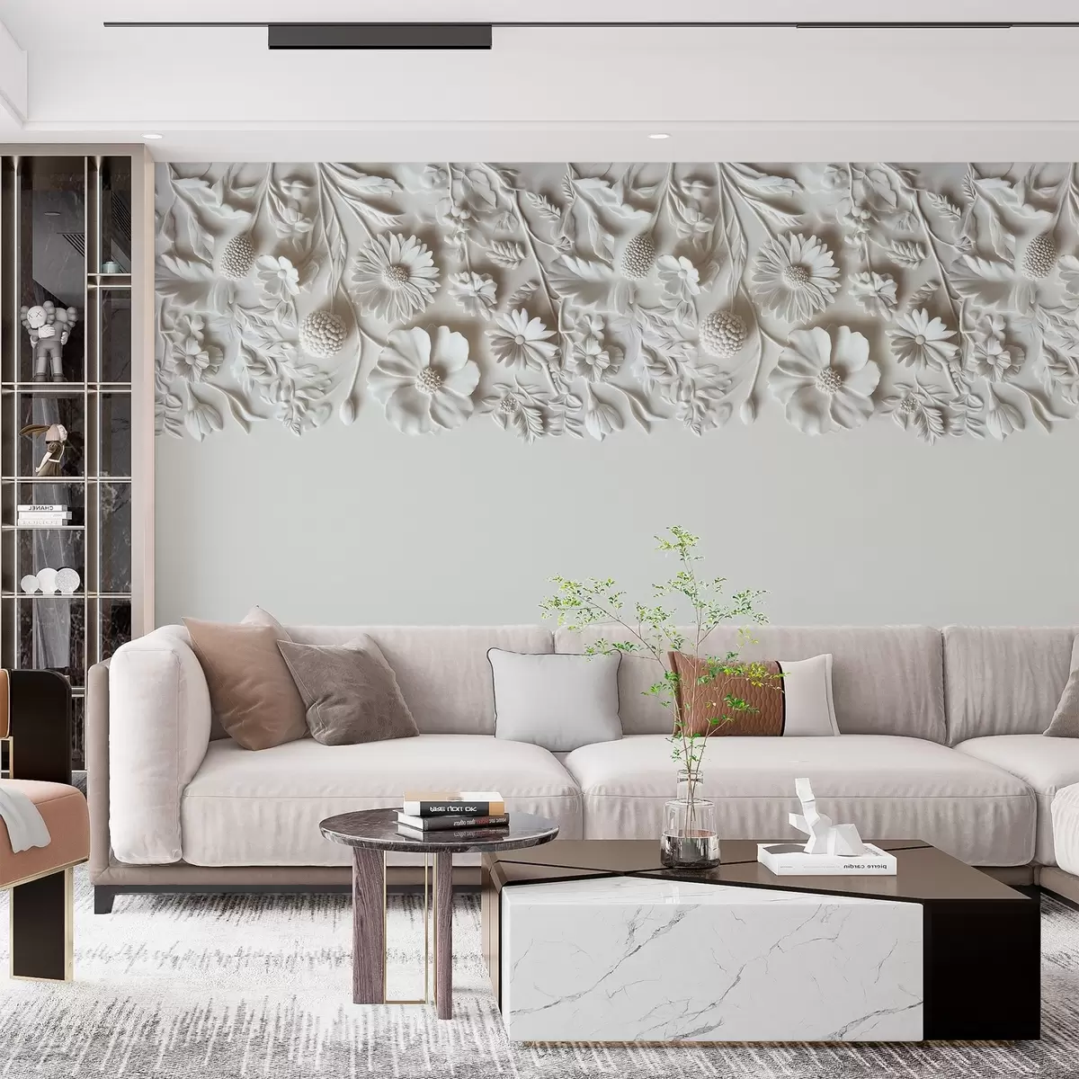 Тапете за зид Имитација бас-рељефа цвећа на врху у млечној боји бр. w03398v1