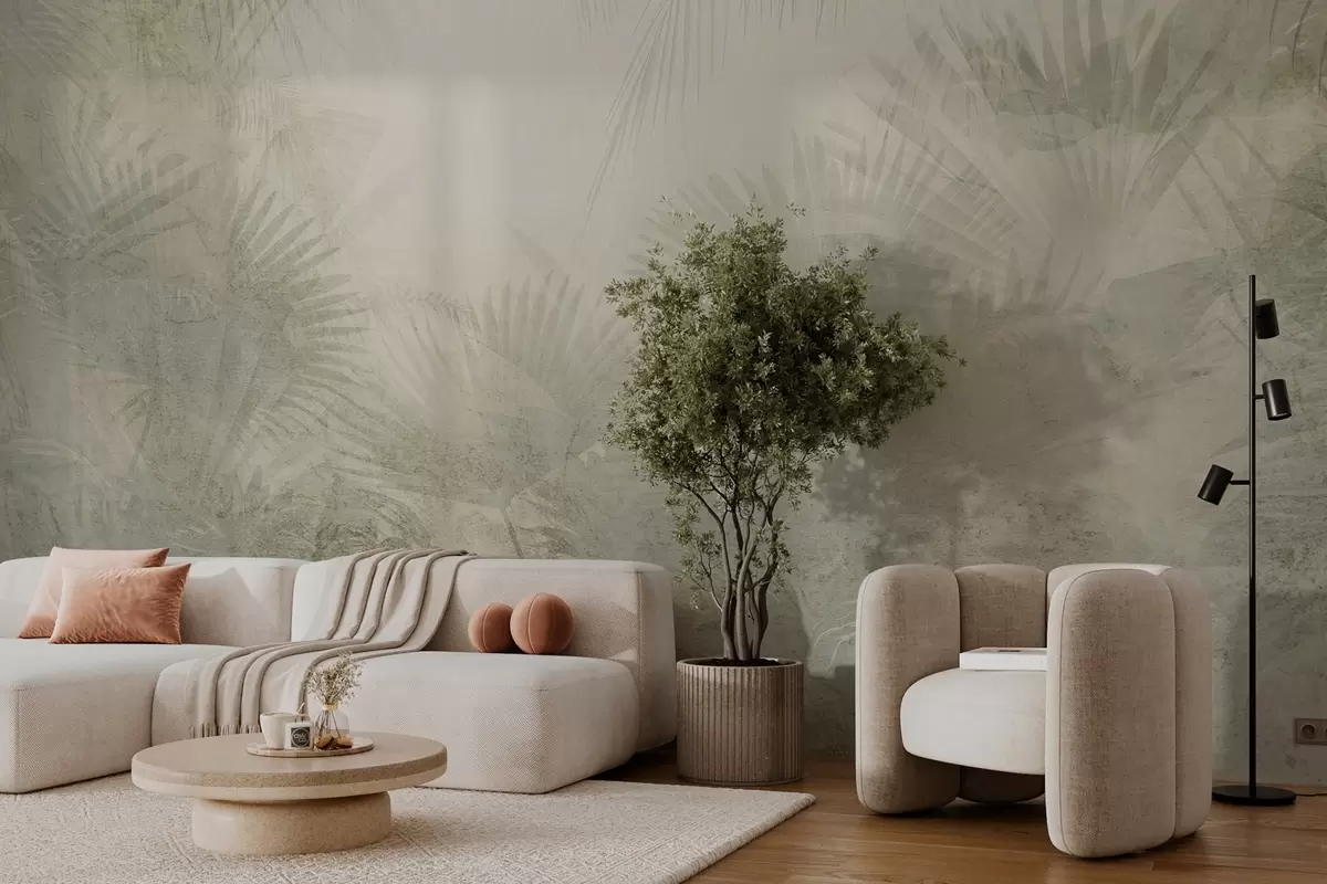 Тапете за зид Текстуриране тропске ретро тапете у беж тоновима бр. w03399