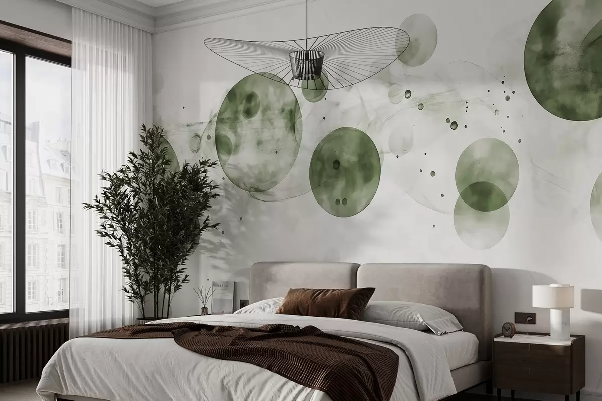 Тапете за зид Кругови у стилу акварела, апстракција, етерична, флуидна уметност, зелене боје бр. w03405v1