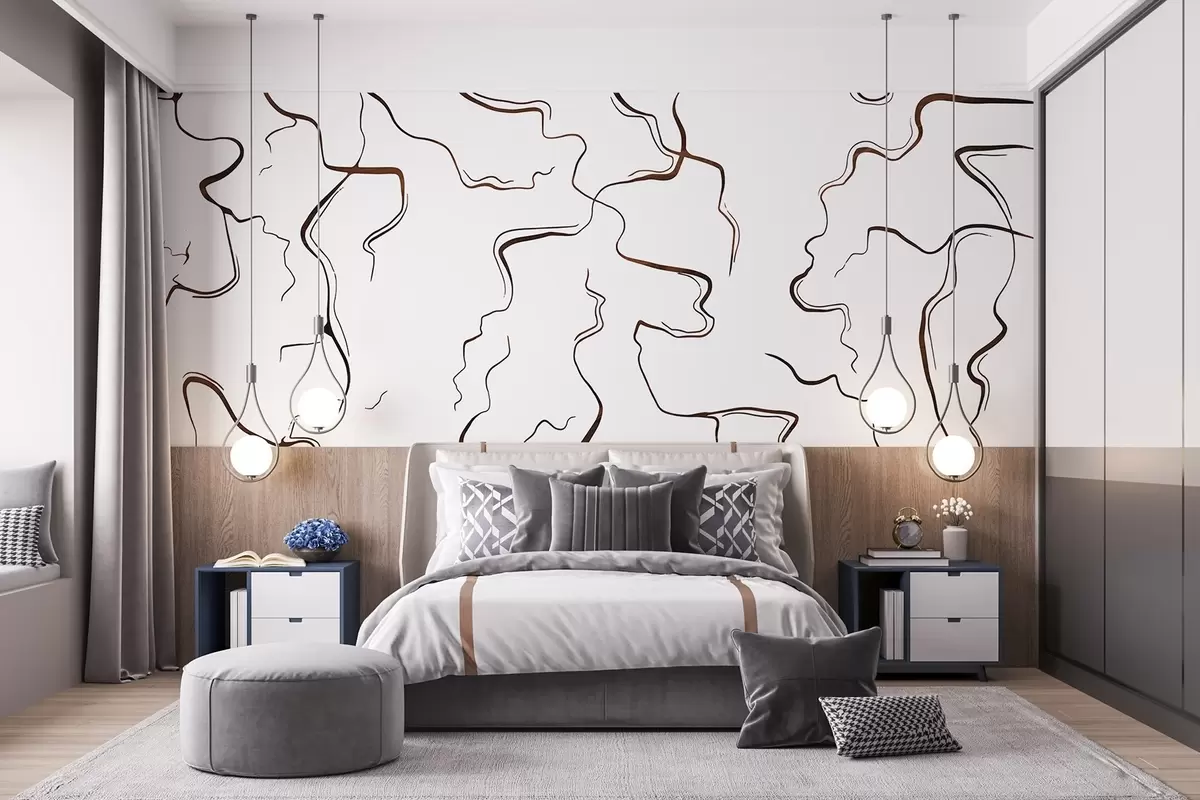 Тапете за зид Геометријске линије, стил мастила, апстракција, браон боје бр. w03436v1