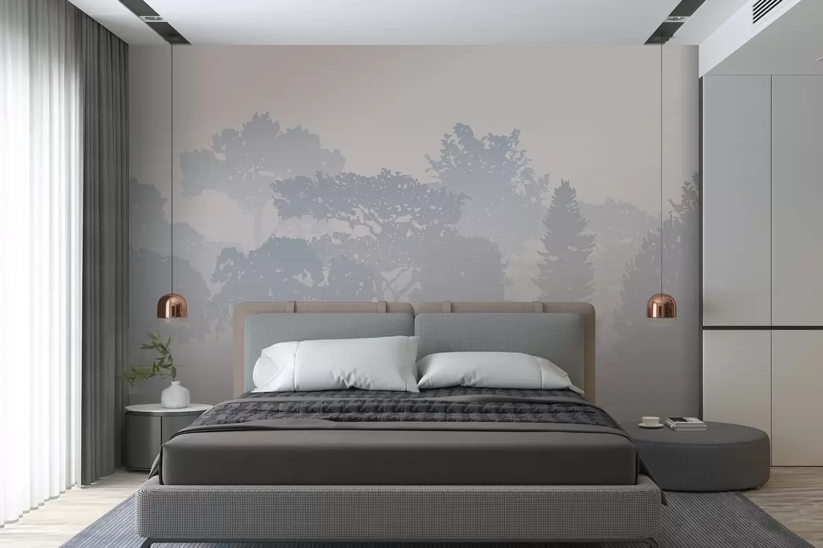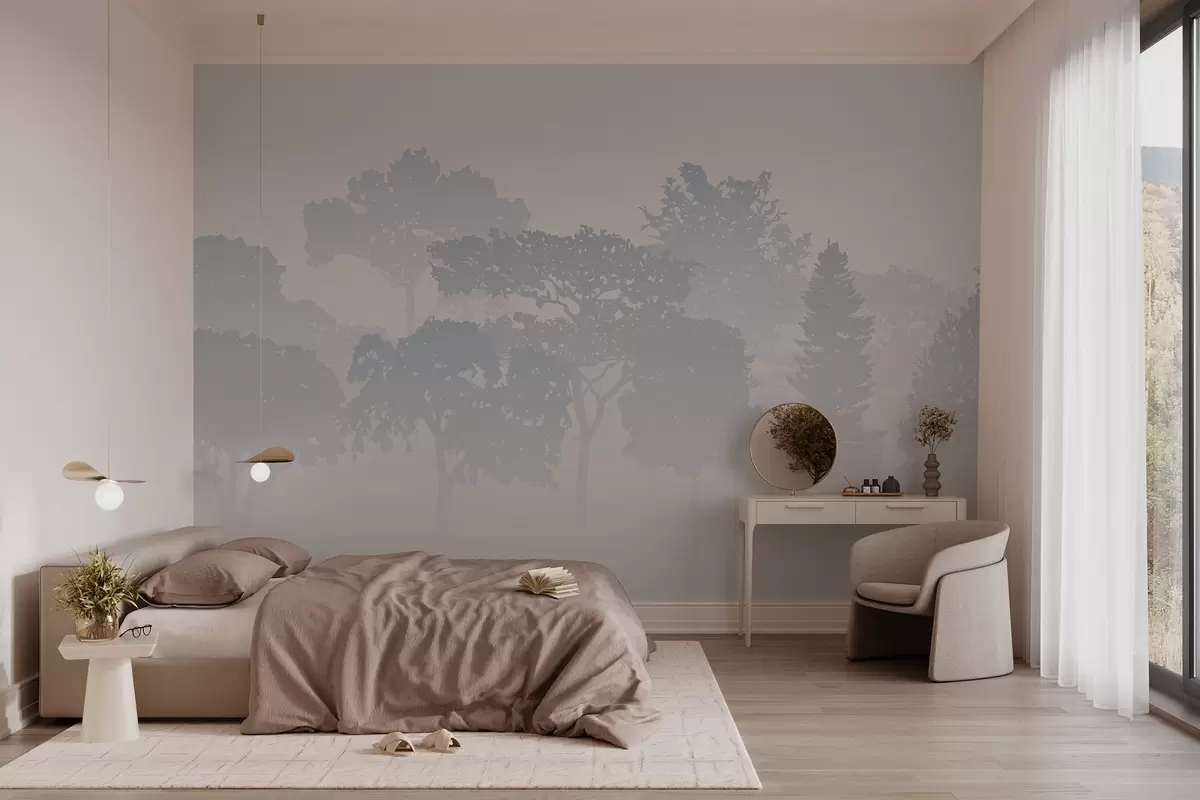 Тапете за зид силуете дрвећа у измаглици магле бр. w03451