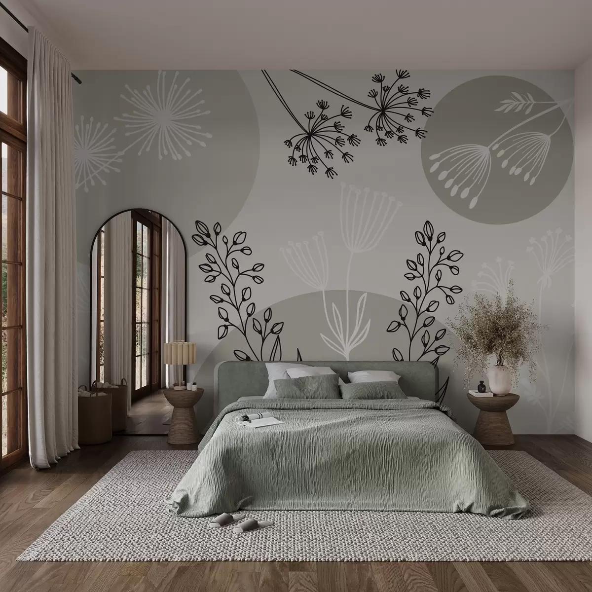 Тапете за зид Апстракција са круговима и биљкама у зеленим тоновима бр. w03483v1