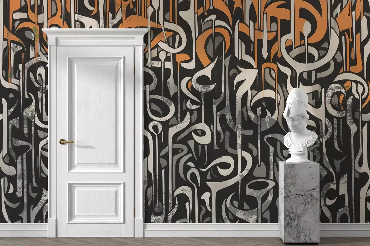 Тапете за зид Улични дизајн са наранџастом и сивом бојом бр. w03607