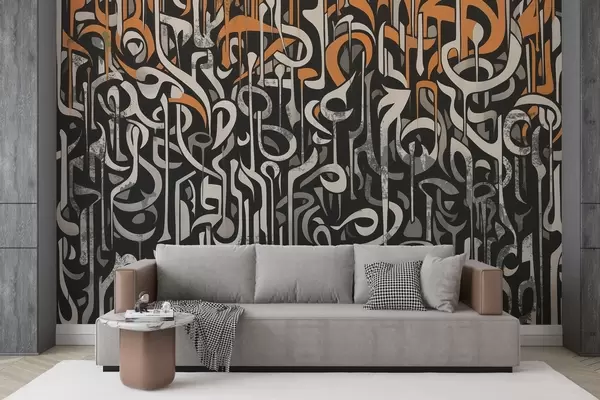 wall murals Улични дизајн са наранџастом и сивом бојом w03607