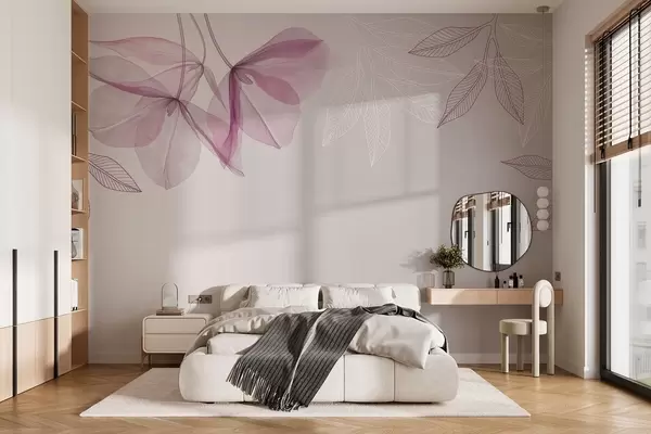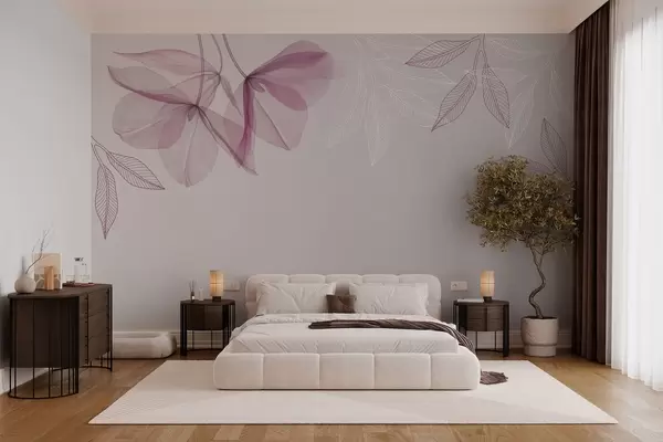 Тапете за зид нежни провидни цветови и листови у љубичастим тоновима бр. w03616v4