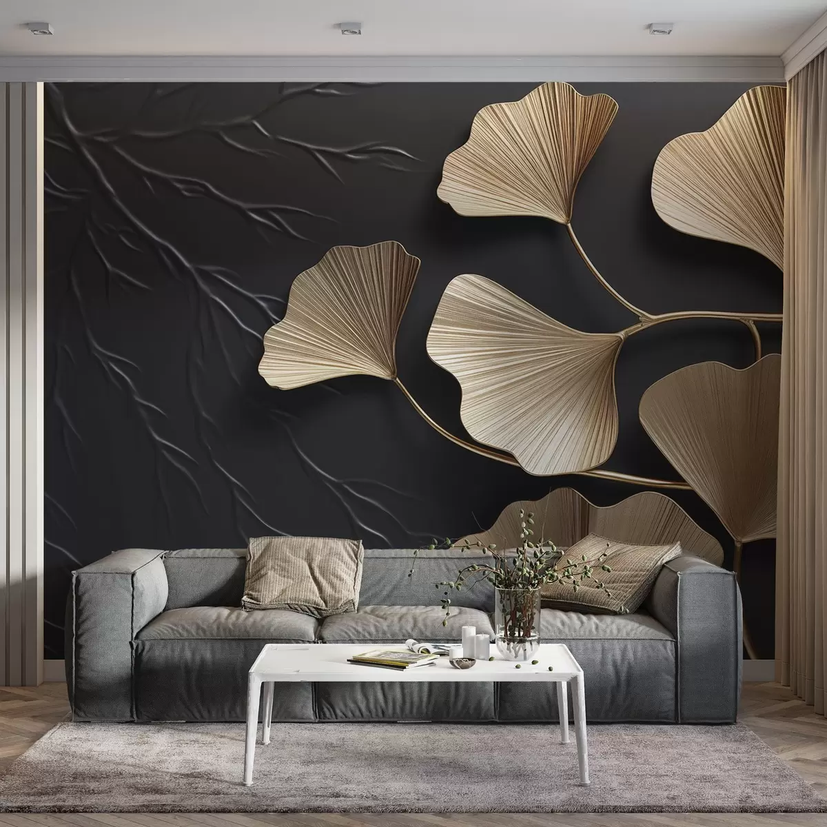 Тапете за зид Волуметријско лишће на тамном зиду бр. w03650v1
