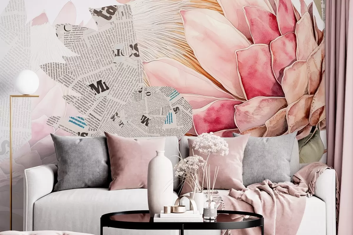 Тапете за зид Цвеће протеа, новинска уметност, цветне, тропске, природне боје бр. w03667