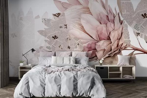 Тапете за зид Протеа цвеће, новинска уметност, цветне, тропске, пастелне беж боје бр. w03667v4