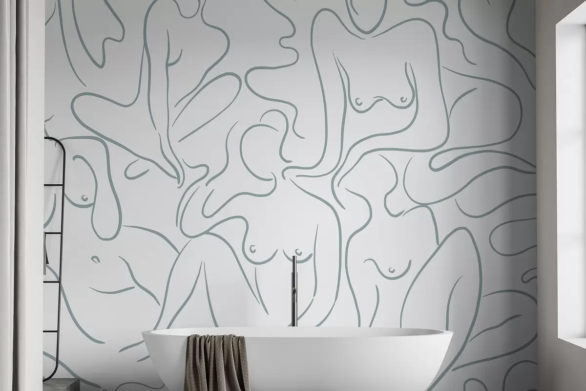 Тапете за зид Цртање линија анатомске силуете, апстракција, плава боја бр. w03755v1