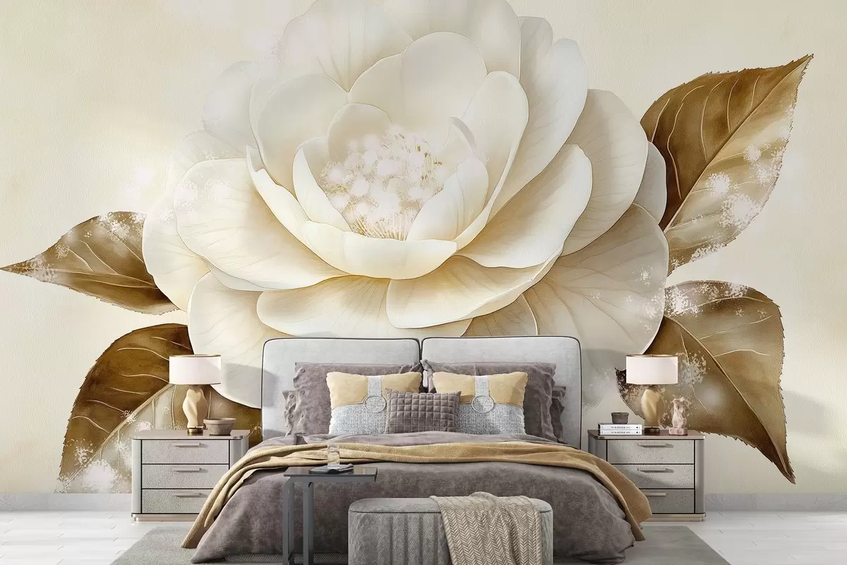 Тапете за зид Предиван цвет божура у беж бојама бр. w03757