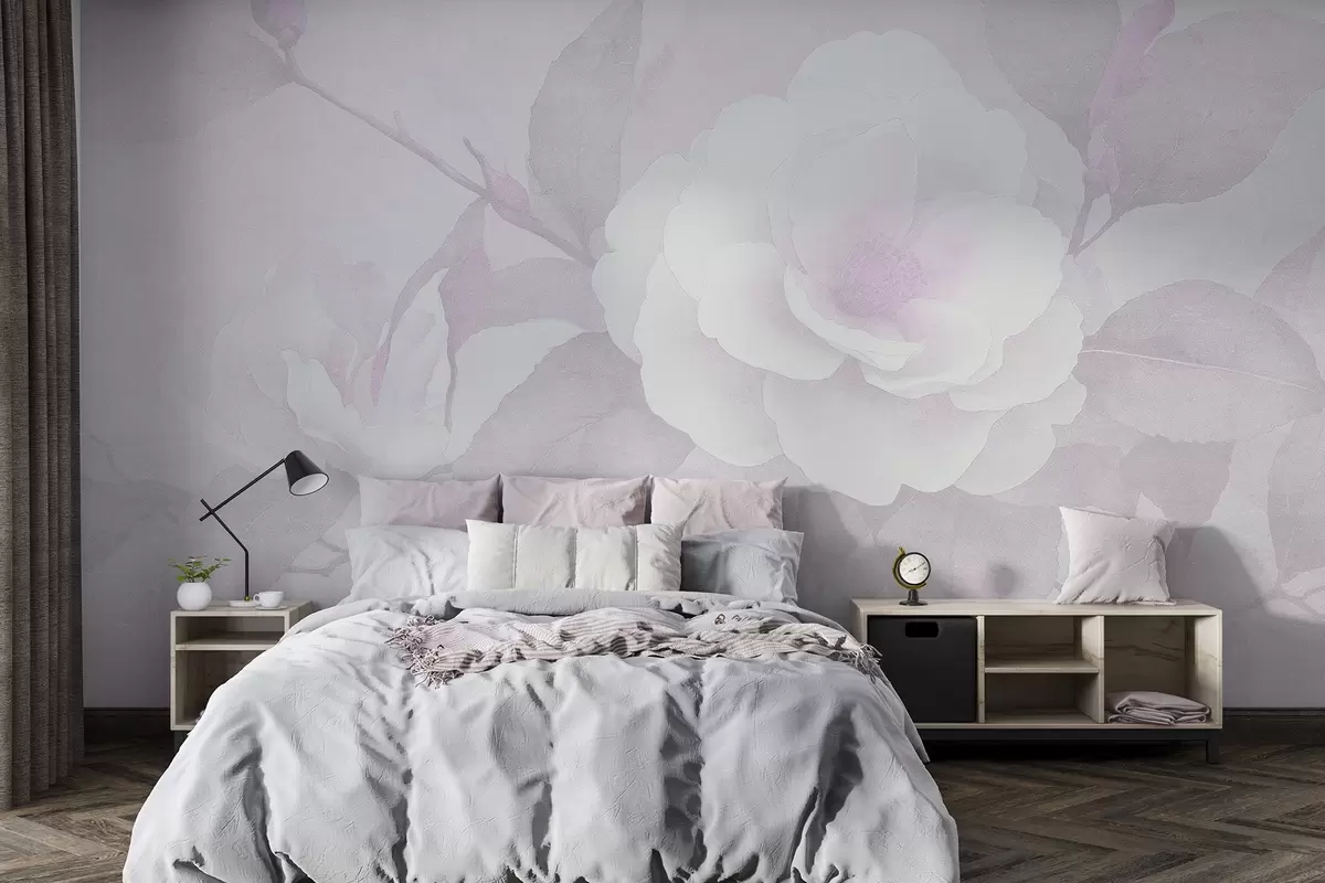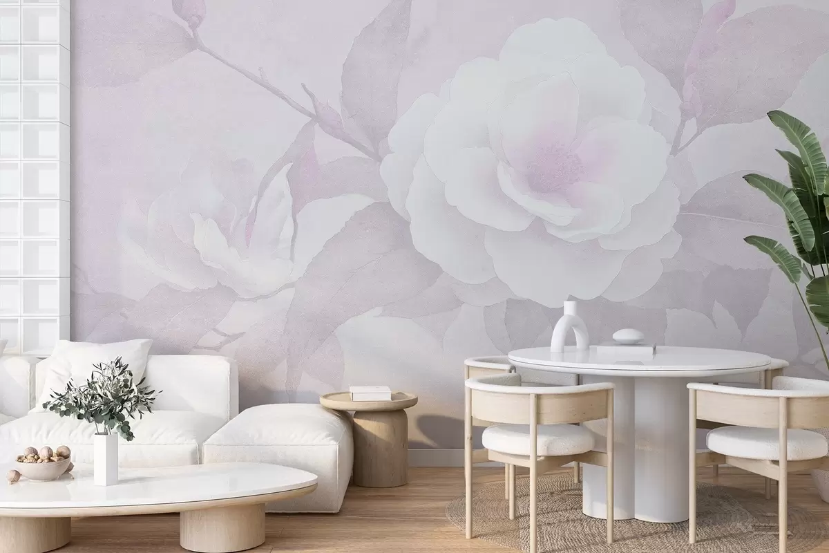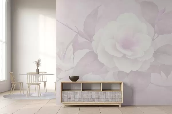 Тапете за зид Меки пастел са цветовима камелије на грани, розе боје бр. w03760v2
