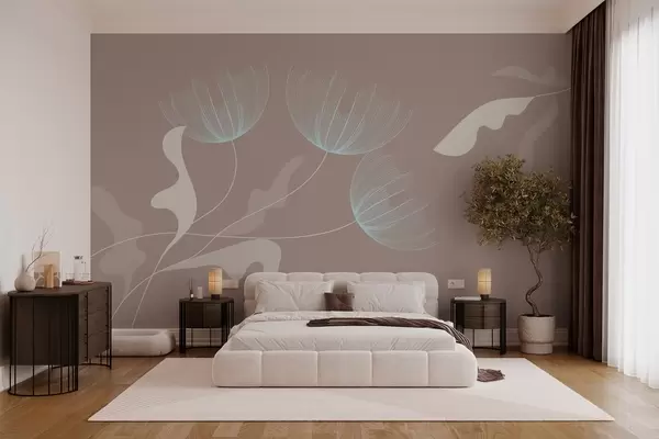Тапете за зид елегантно минималистичко цвеће у белим и плавим тоновима на мока позадини бр. w03763v3