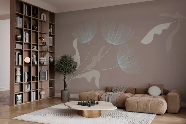 Тапете за зид елегантно минималистичко цвеће у белим и плавим тоновима на мока позадини бр. w03763v3
