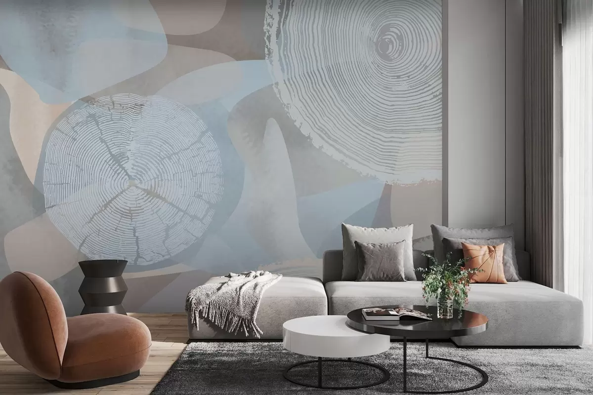 Тапете за зид модерни апстрактни облици и годишњи прстенови дрвећа бр. w03769