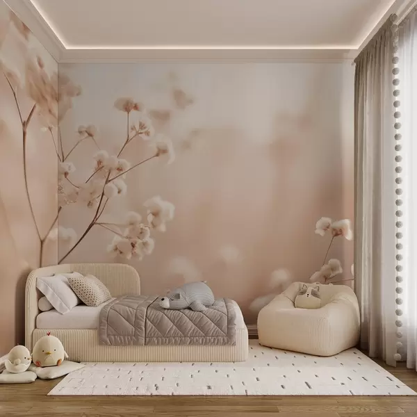 Тапете за зид Нежно кремасто суво цвеће ван фокуса на топлој позадини бр. w03793