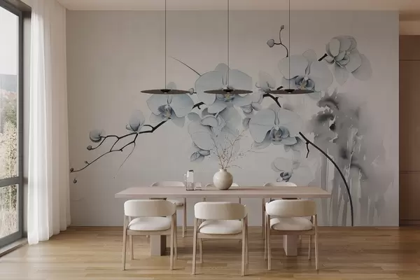 Тапете за зид Акварел орхидеје у јапанском стилу на светлој позадини бр. w03795
