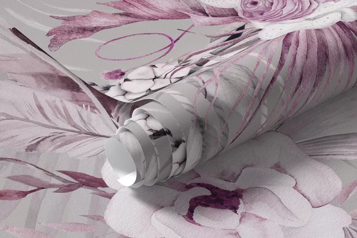 Тапете за зид Орнамент у бохо стилу са цветовима и птицама божура, стил акварела, розе боје бр. w03885v1