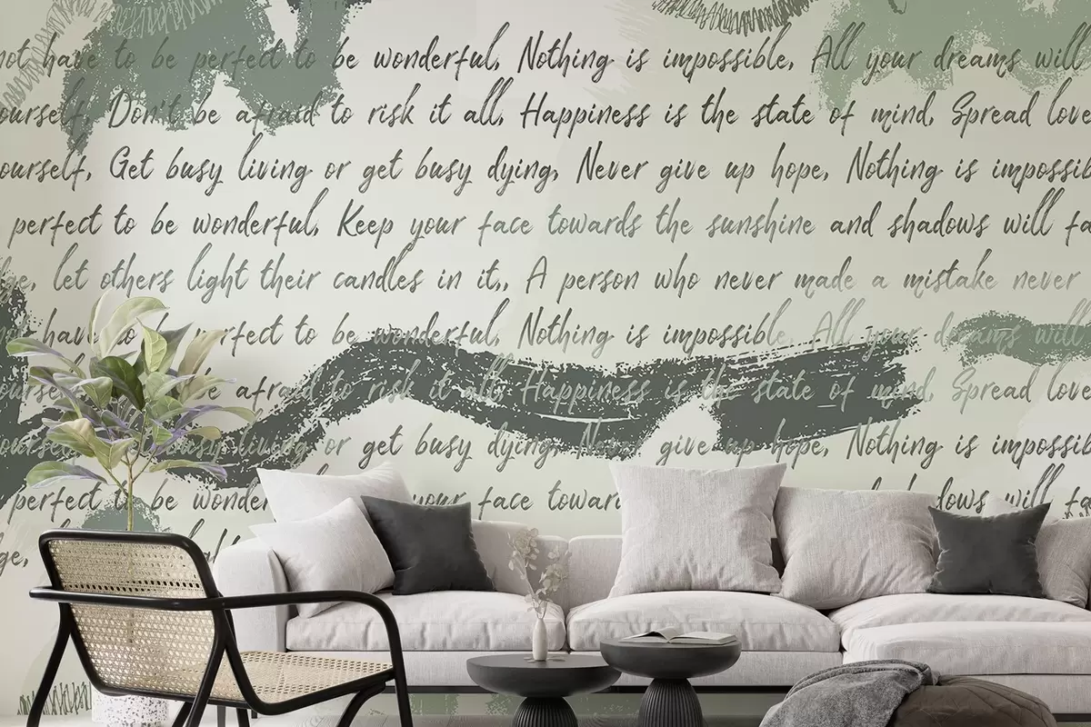 Тапете за зид Дизајн са инспиративним цитатима, апстракцијом, зеленим бојама бр. w03909v1
