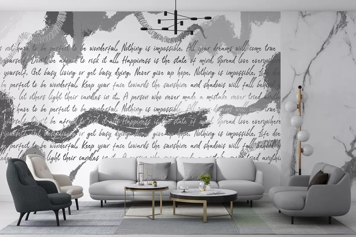 Тапете за зид Дизајн са инспиративним цитатима, апстракцијом, сивим бојама бр. w03909v4