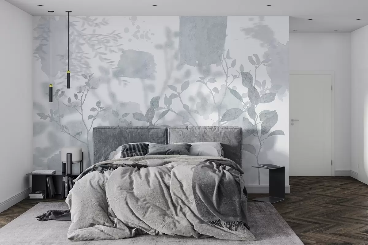 Тапете за зид Силуете дрвећа, гране, природа, акварел, плаве боје бр. w03911v2