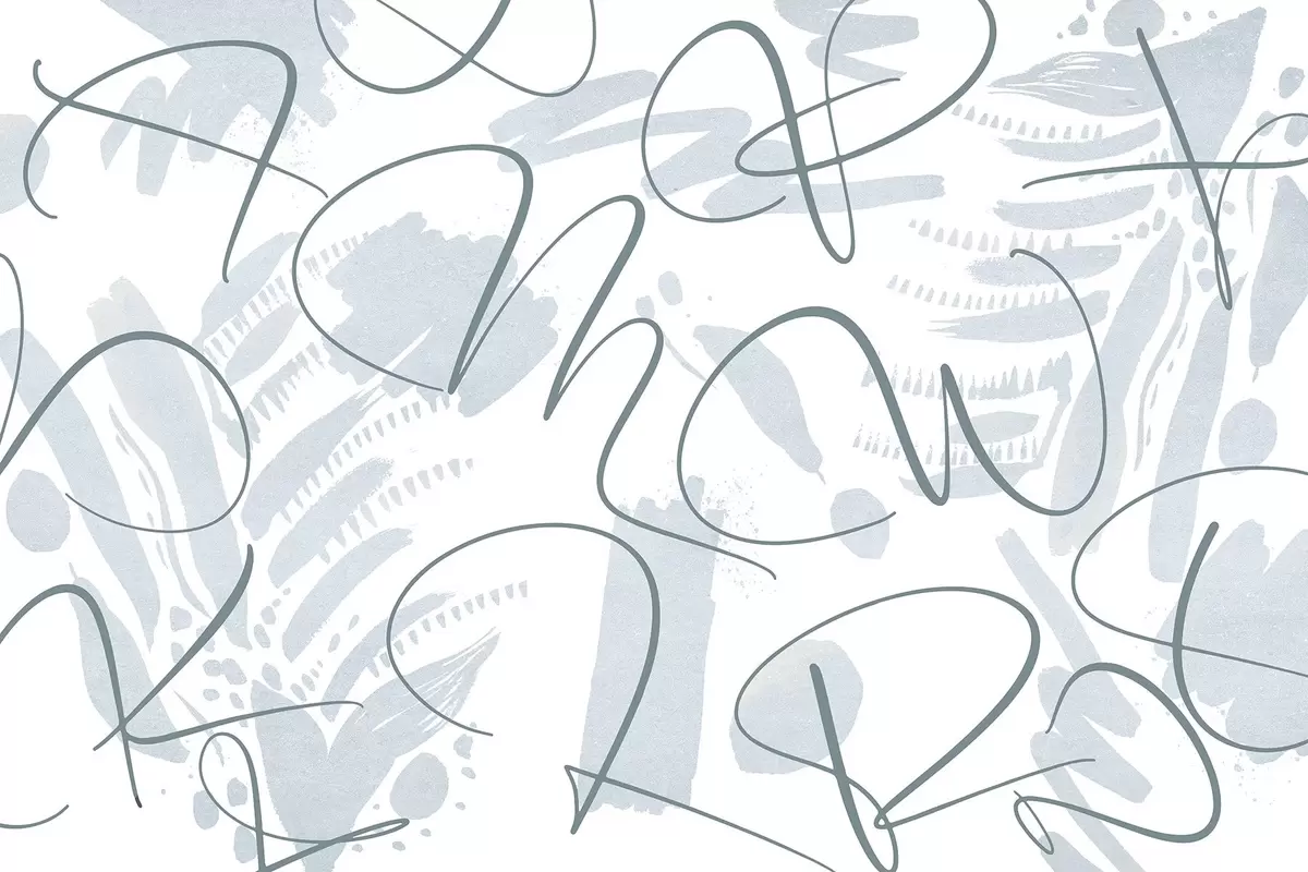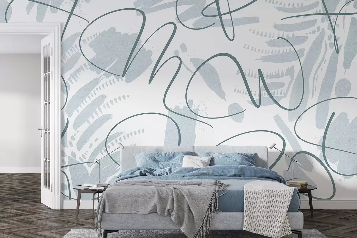 Тапете за зид Калиграфска апстракција са словима, потези четкице, плава боја бр. w03913v1