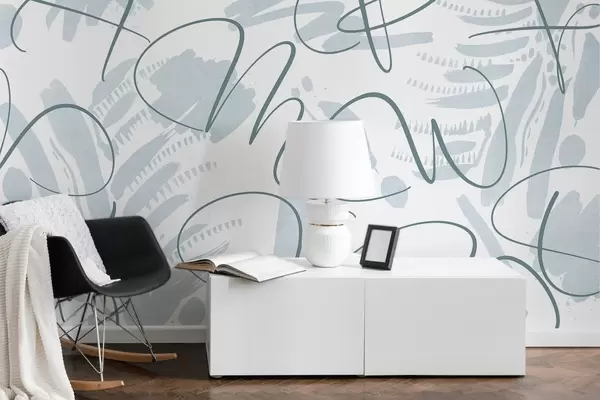 Тапете за зид Калиграфска апстракција са словима, потези четкице, плава боја бр. w03913v1