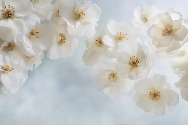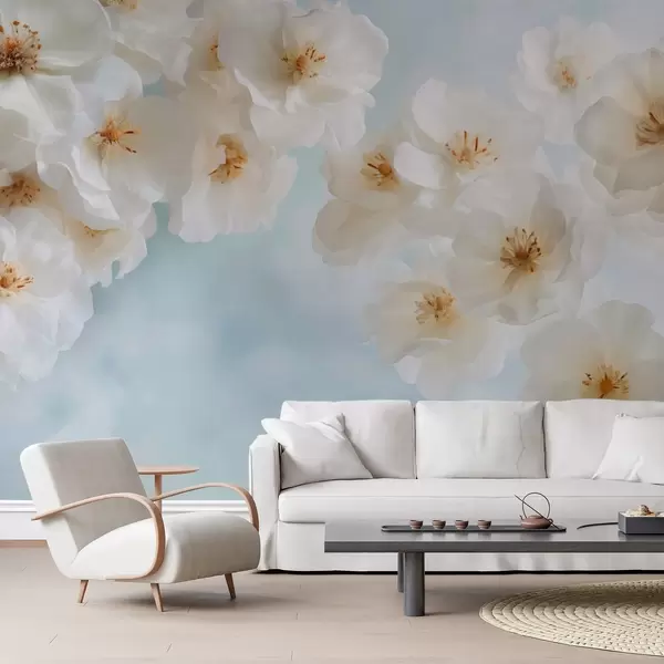 wall murals Нежно велико цвеће на светлоплавој позадини w03931v1