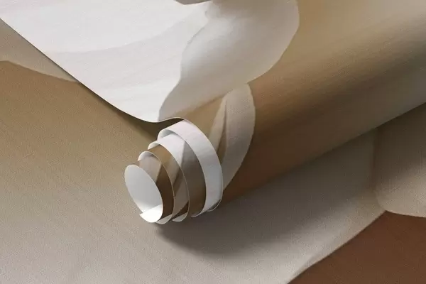 Тапете за зид Волуметријска цветна композиција са нежним латицама инспирисаним папиром или текстилом у тоновима слоноваче, ваниле и руменила, постављена на топло беж платно. бр. w03945