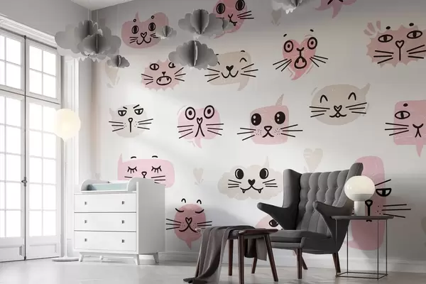 Тапете за зид Мачја лица у нијансама ружичасте бр. w03951v1